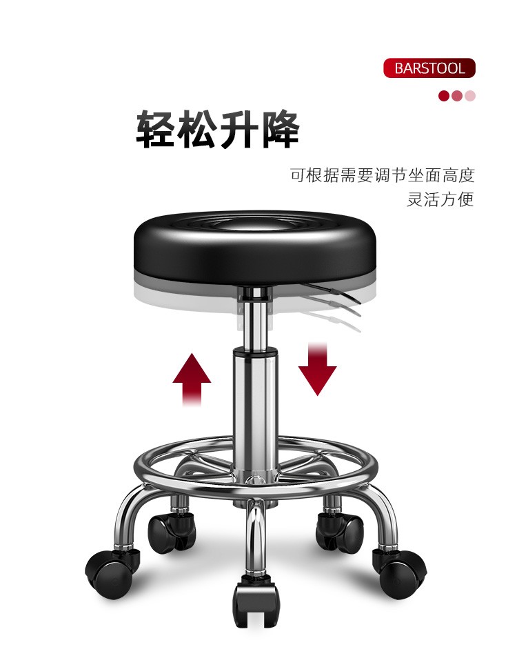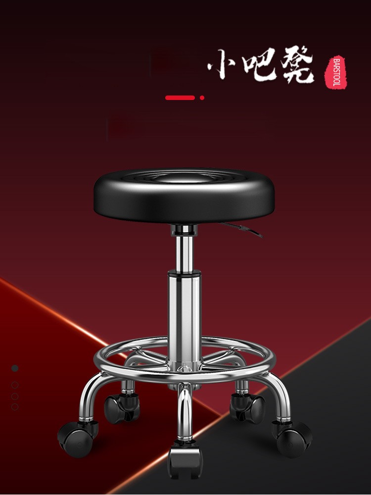 Lift chair, bar chair, stool, household small round stool, high stool, bar stool with wheels, rotatable beauty stool, laboratory bar chair, cash register, office reception chair, black water wave - pulley model