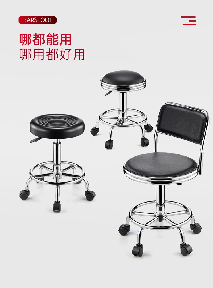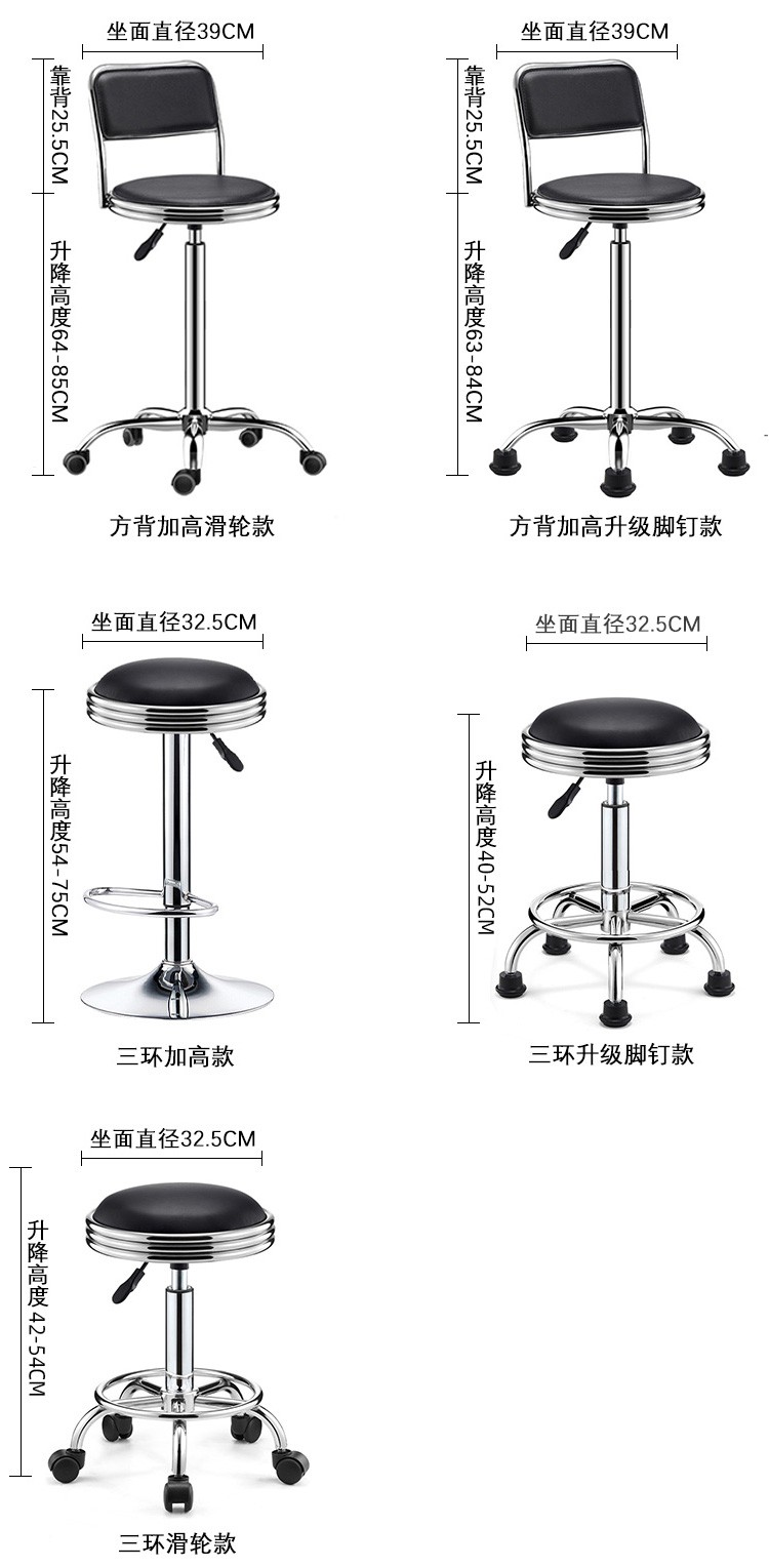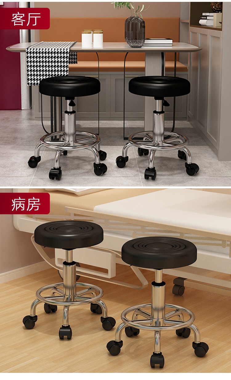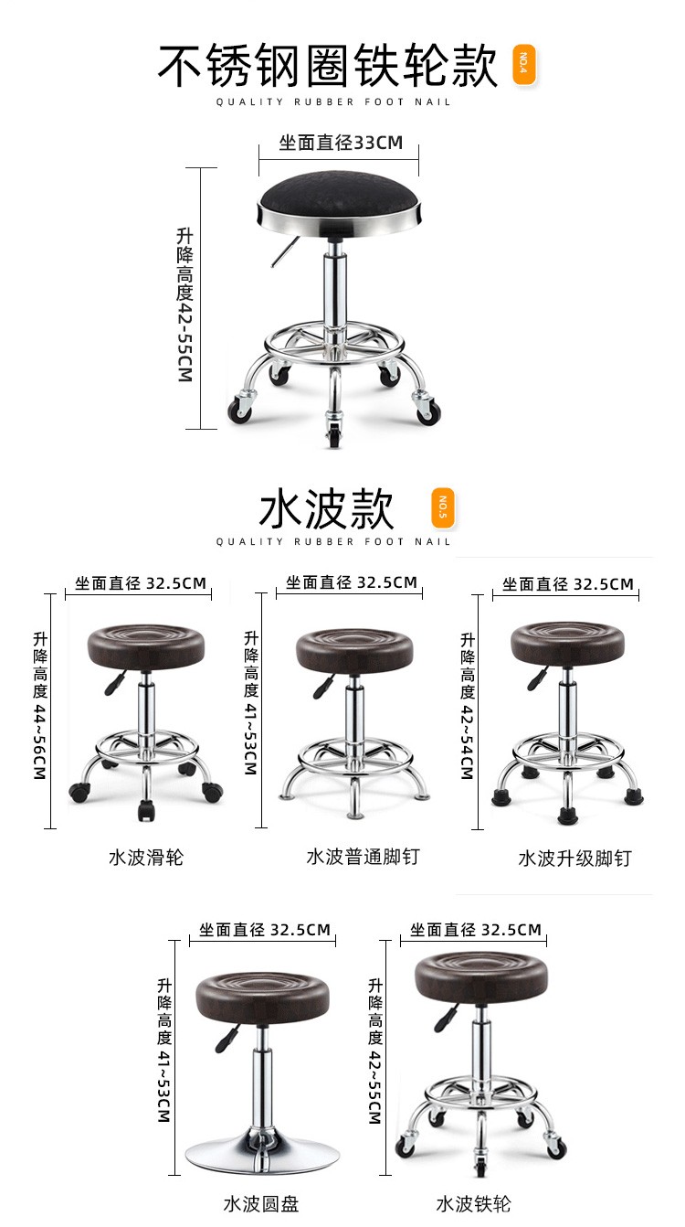 Lift chair, bar chair, stool, household small round stool, high stool, bar stool with wheels, rotatable beauty stool, laboratory bar chair, cash register, office reception chair, black water wave - pulley model [Image price, brand quotation]-
