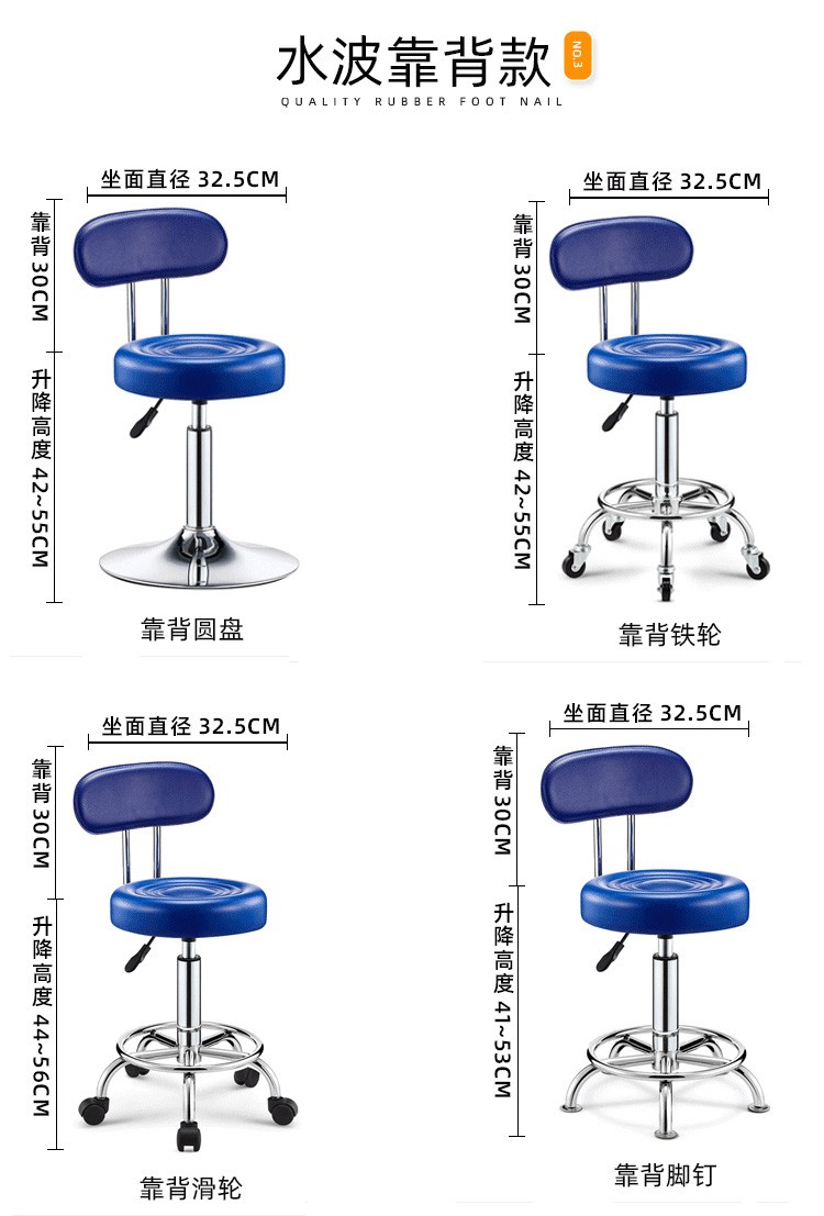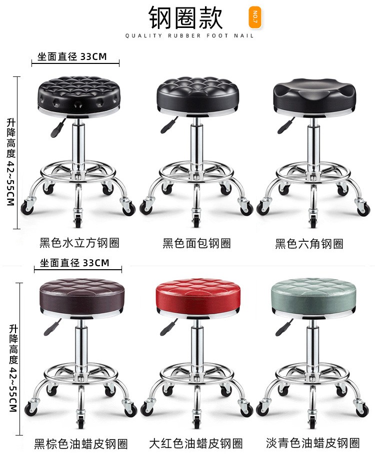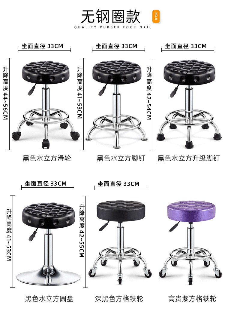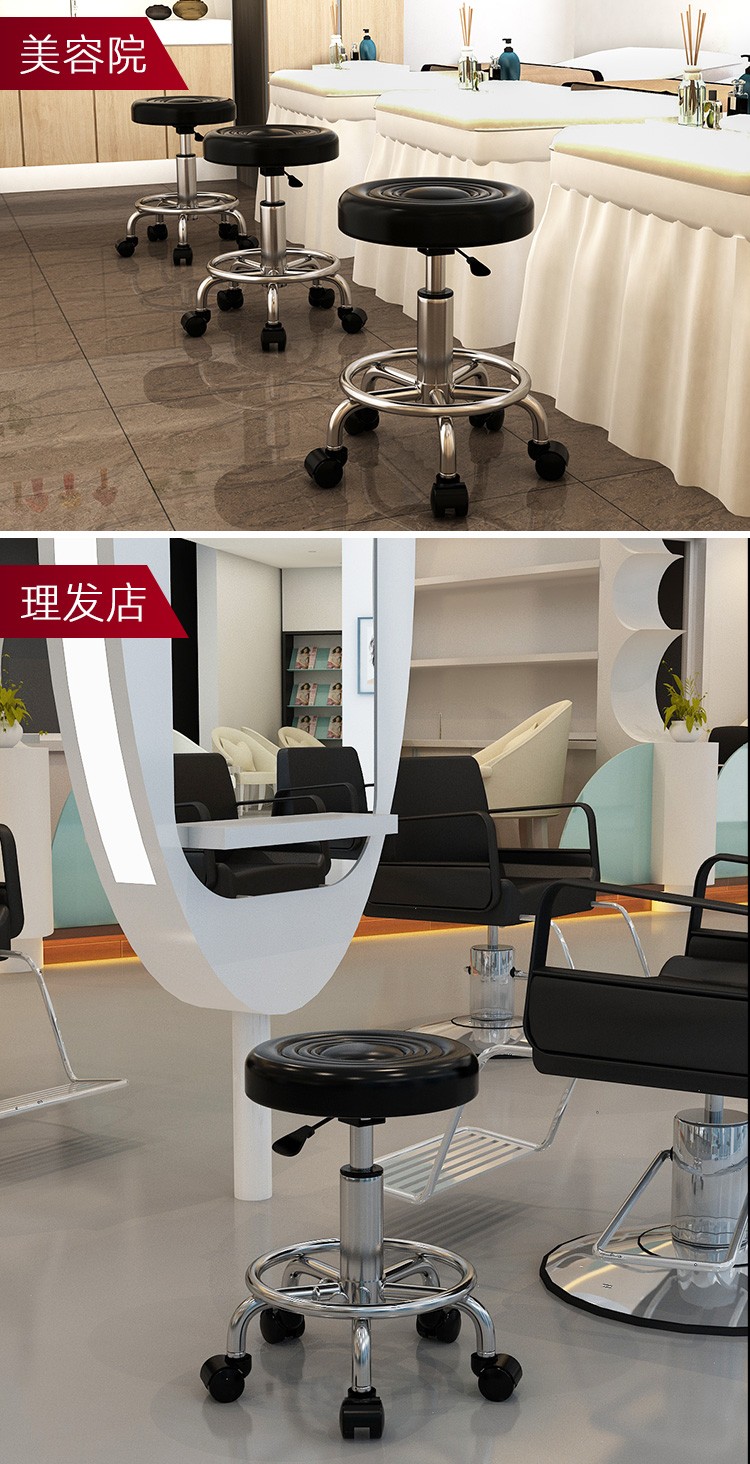 Lift chair, bar chair, stool, household small round stool, high stool, bar stool with wheels, rotatable beauty stool, laboratory bar chair, cash register, office reception chair, black water wave - pulley model [Image price, brand quotation]-