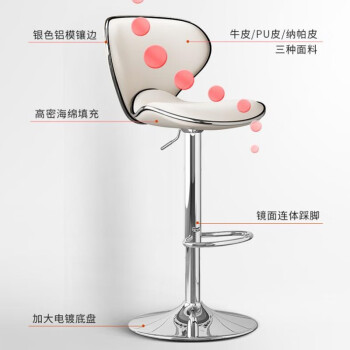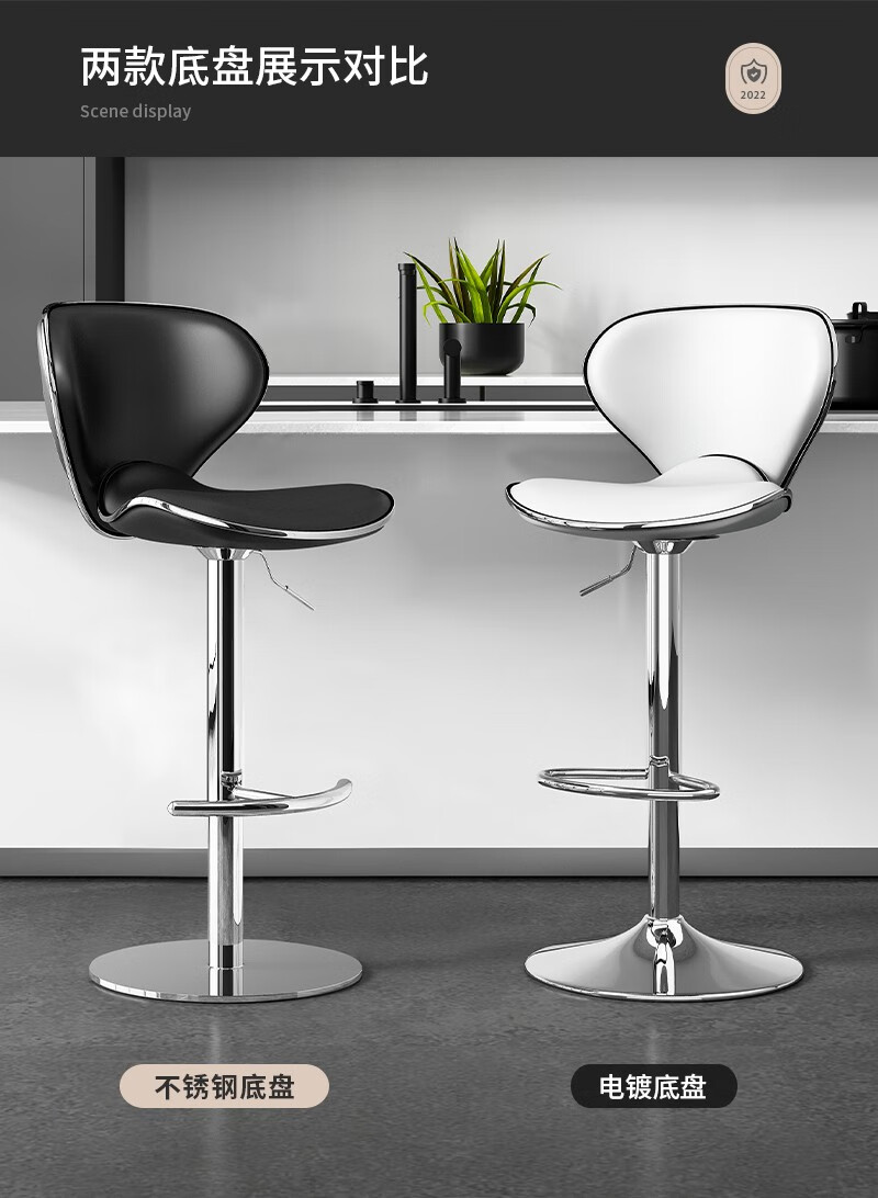 DSRAWMYT bar chair, high stool, lifting chair, front desk bar stool, modern and minimalist bar chair, high stool, high backrest, cash register stool, white high model, enlarged chassis